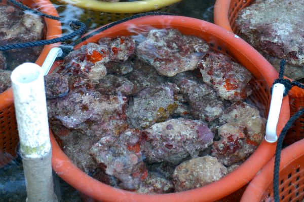 shipping within the continental United States Live Rock/Reef Rock Aquaculture We feel that our live rock is of premium quality, both for its diversity and healthy condition. After a growing out period of several years, we consistently find reef rock living organisms such as purple coralline, gorgonians, encrusting bryozoans, feather dusters, spiny oysters and many different species of coral. Click here to read about what's growing on the reef rock. Your order will have a selection of small, medium, and